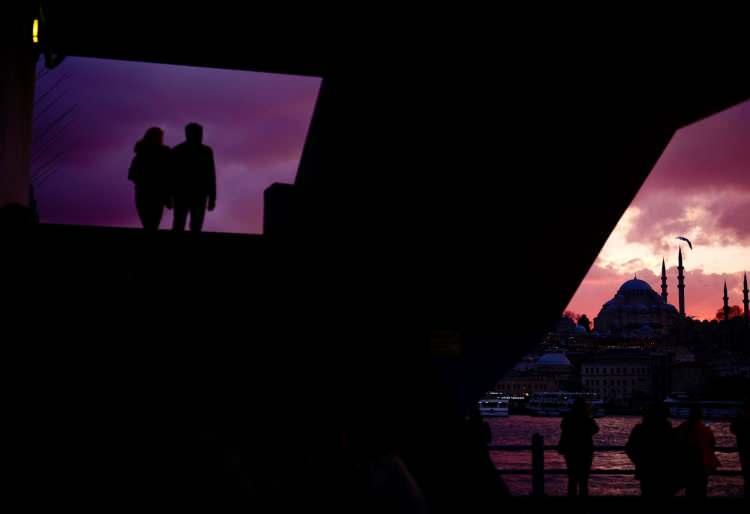 İstanbul'da vatandaşlar ve turistler gün batımında Eminönü çevresinde vakit geçirdi.