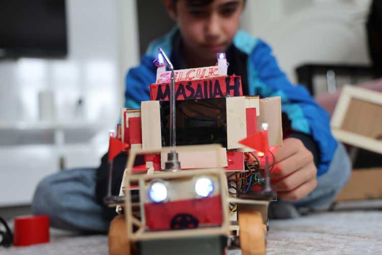 Atık malzemeler ve harçlığıyla üretti! 12 yaşındaki Selçuk, Selçuk Bayraktar'ı örnek alıyor