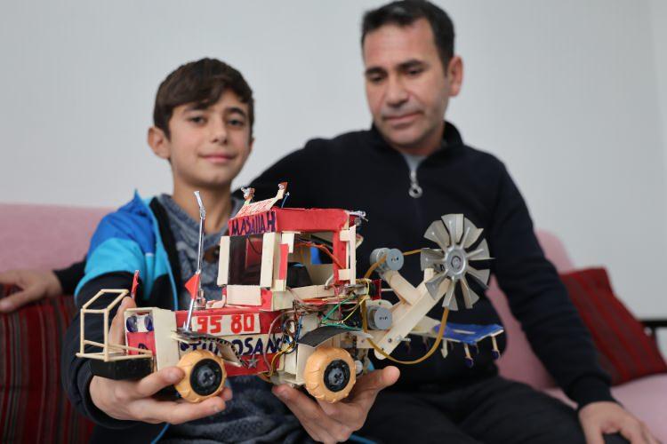 Atık malzemeler ve harçlığıyla üretti! 12 yaşındaki Selçuk, Selçuk Bayraktar'ı örnek alıyor