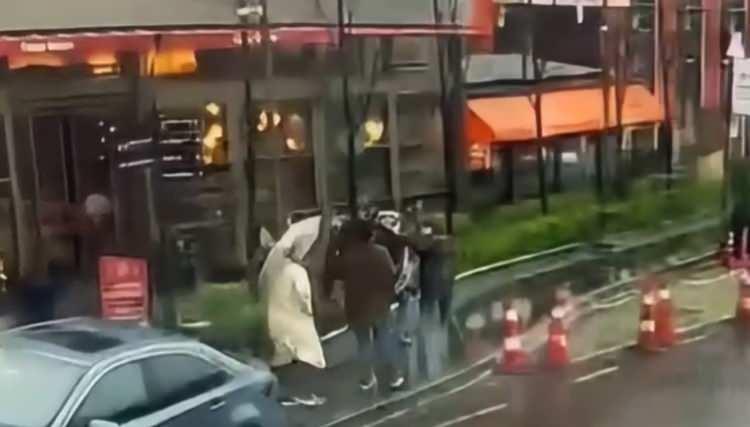 Kadın burada arkadaşlarıyla yemek yedikten sonra dışarı çıktı.