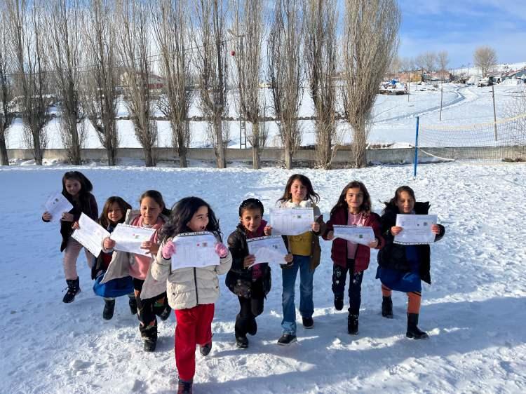 Kars'ın Akyaka ilçesindeki Boyuntaş İlkokulu öğrencileri karne sevinci yaşadı.