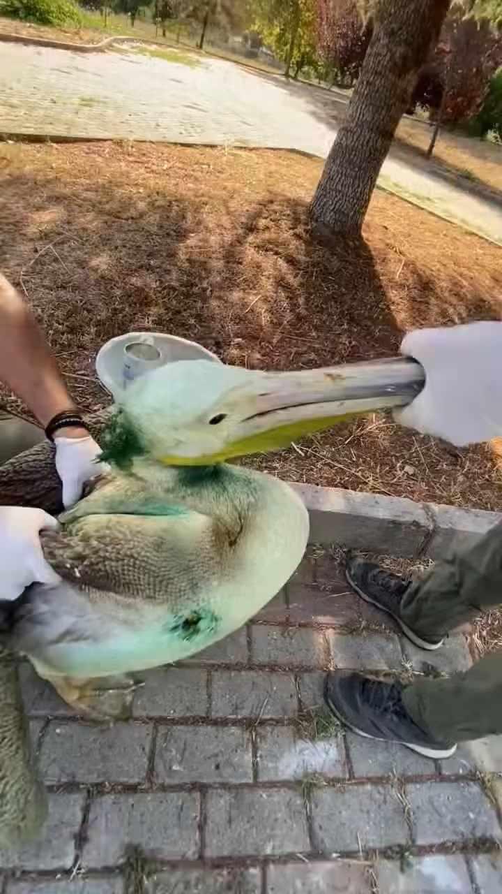 Bursa'da ense ve boyun bölgesinden yaralı olarak bulunan ak pelikan, DKMP 2'nci Bölge Müdürlüğü tarafından tedavi altına alındı.