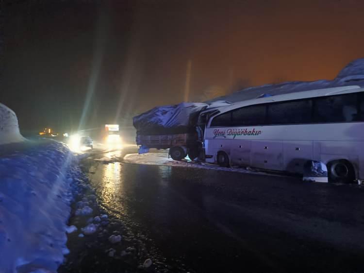 Bingöl'de yolcu otobüsü kayan tıra ok gibi saplandı, 3 kişi yaralandı