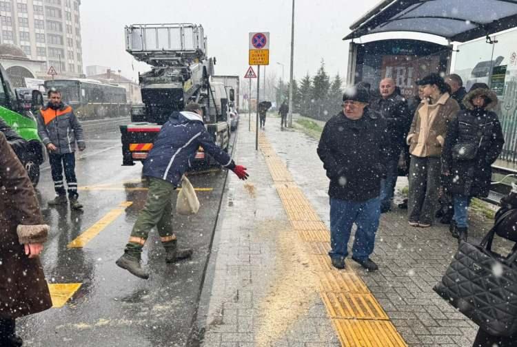 Metrobüs üstgeçidinde yoğunluk izdihama dönüştü