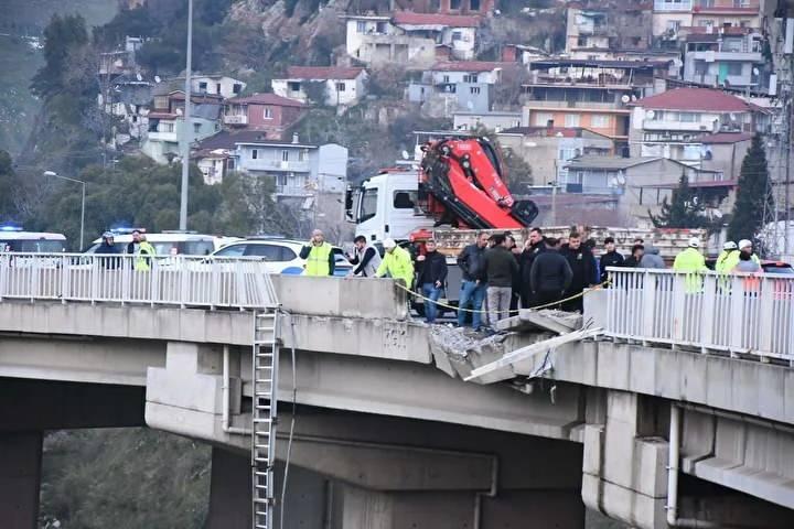 İzmir'de feci kaza! İş makinesi yüklü tır viyadükten düştü, yaralılar var