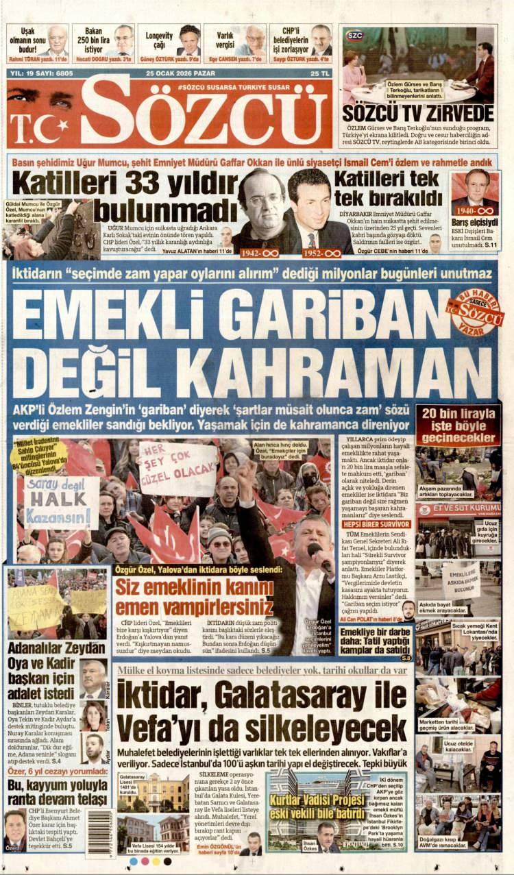 25 Ocak Pazar 2026 Gazete Manşetleri