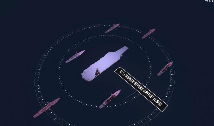 Devasa uçak gemileri adanın açıklarına demirleyerek tüm operasyon için bir yüzer komuta merkezi oluşturur.