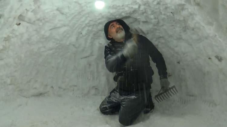 Masa ve sandalye yerleştirdiği kardan yapıya 'Otantik İglo Cafe Muş' adını veren Alak, burada müşterilerine çay, kahve ve sıcak sütün yanı sıra yoğurduğu çiğ köfteyi de ikram ediyor.