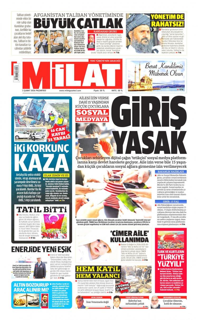 2 Şubat Pazartesi 2026 Gazete Manşetleri