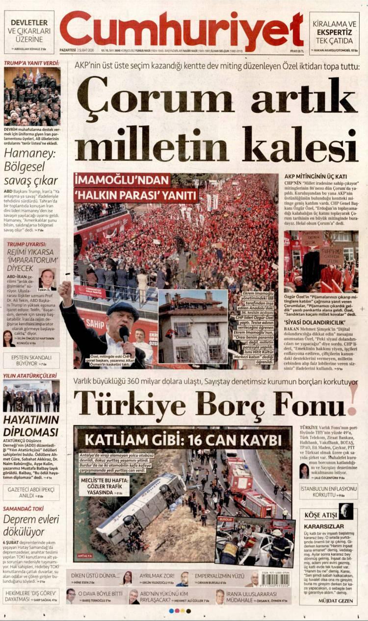 2 Şubat Pazartesi 2026 Gazete Manşetleri