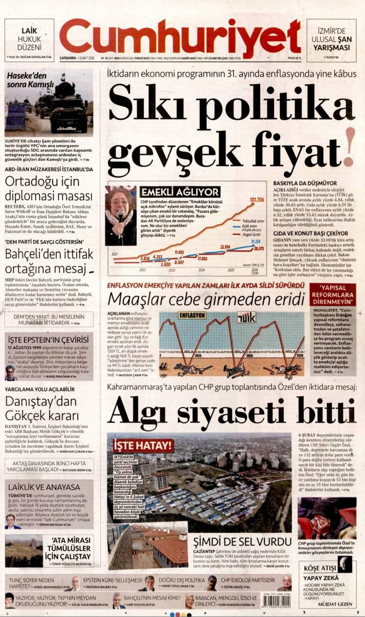 4 Şubat Çarşamba 2026 Gazete Manşetleri