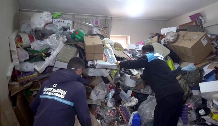 Belediye ekipleri 3 gün boyunca süren çöp boşaltma çalışmasının sona ermesinin ardından daireyi ilaçlayarak M.A.nın yakınlarına teslim edecek