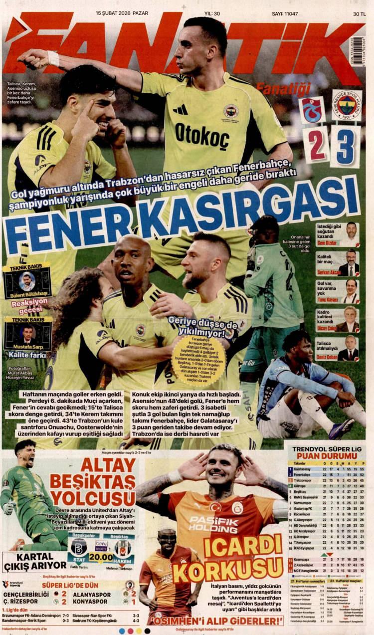 15 Şubat Pazar 2026 Gazete Manşetleri