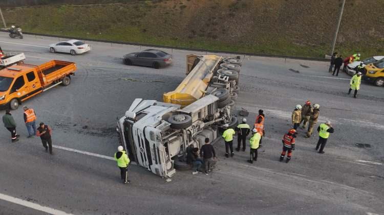 Tem otoyolunda hafriyat kamyonu devrildi: Yol savaş alanına döndü