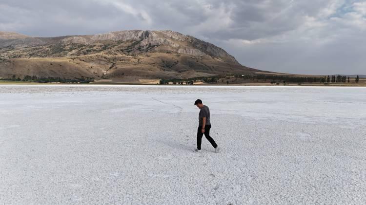 Yaz aylarında kuruyan ve üzerinde rahatlıkla yürünebilen Kellah Gölü'nün su tutmuş hali dron ile görüntülendi.