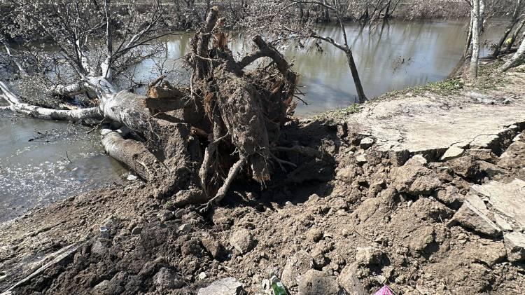 Bazı ağaçlar, köklerinden ayrılarak nehre devrildi.