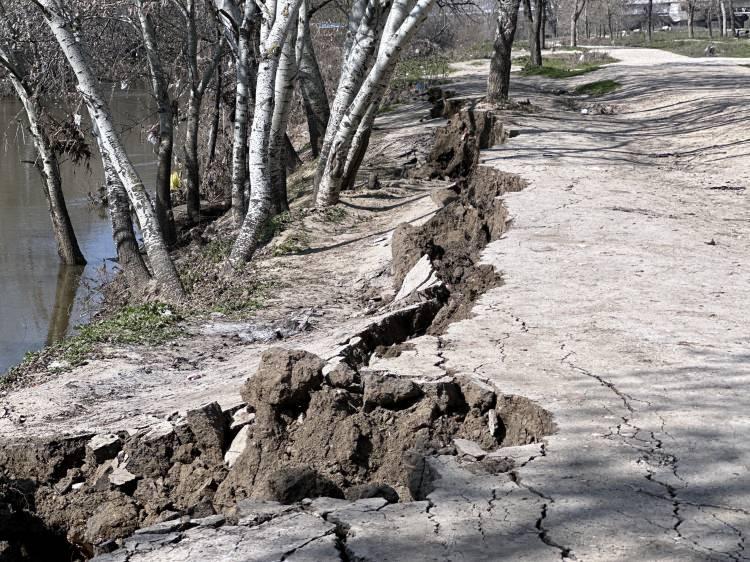 Tunca Nehri kıyısında oluşan çatlak ve göçükler korkuttu! Uzman isimden açıklama