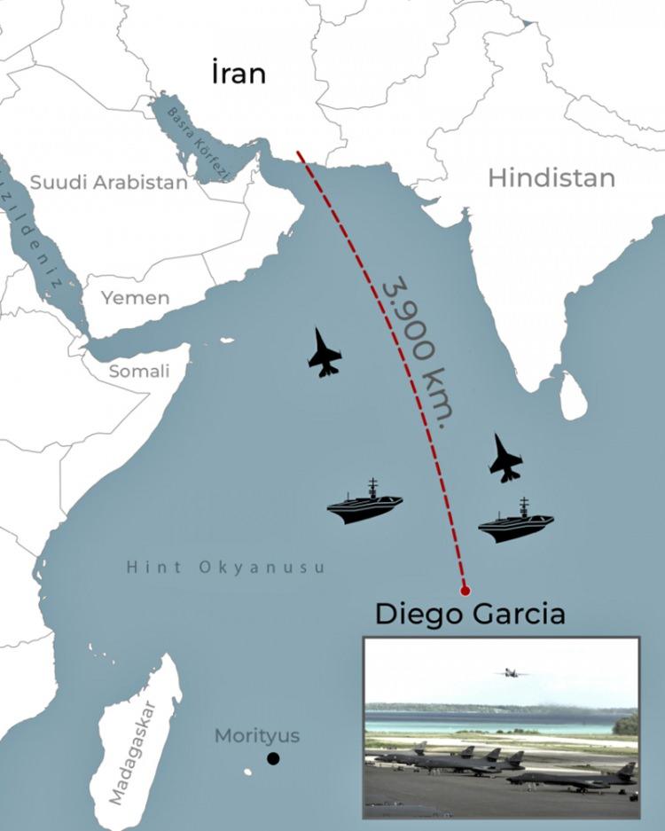 Diego Garcia, İran'dan yaklaşık 4 bin kilometre uzaklıkta bulunan ve ABD-İngiltere'ye ait askeri bir üs.