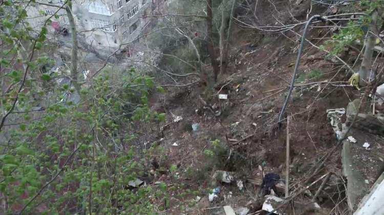 İddiaya göre, etkili olan yağışın ardından sokaktaki bir binanın bahçesinde toprak kayması meydana geldi.