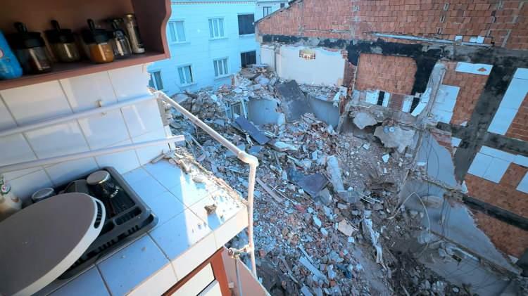 Duvara monte edilen kombi ile ocak, yıkılan duvarla birlikte beton parçaları üzerine düştü. Kısa süreliğine durdurulan yıkıma bir süre sonra devam edildi.