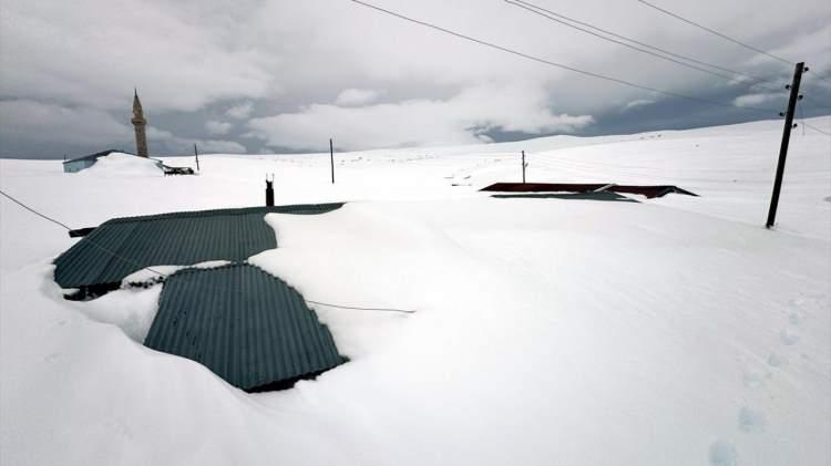 Evler baharda kar altında kaldı
