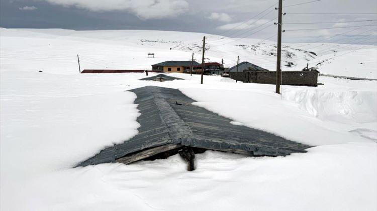 Evler baharda kar altında kaldı