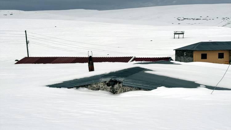 Evler baharda kar altında kaldı