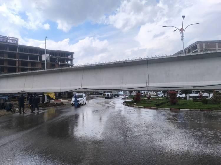 Pervari ilçesinde yapımı süren viyadük inşaatı için bir tırla bölgeye nakledilen 50 metrelik beton köprü kirişi, tır kavşaktan dönüş yaparken yolda takılı kaldı.