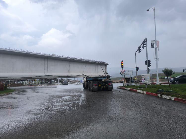 Kavşakta dev engel: 50 metrelik beton blok kavşağı esir aldı