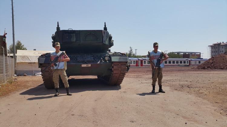 14 tankla 1 zırhlı personel taşıyıcıdan oluşan araçlar, ilçedeki Alpay Başaran Kışlası'na alındı.
