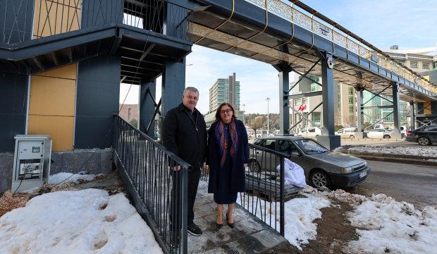 Toplam 50 metre uzunluğunda ve 5.70 metre yüksekliğinde inşa edilen üst geçitte, engelli vatandaşların kullanımına yönelik çift taraflı asansör sistemi bulunuyor.