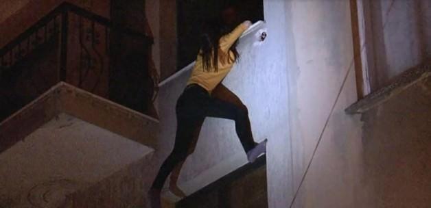 Atlamak üzereyken erkek arkadaşının kollarından yakalamasına rağmen yukarı çekemediği, kendisi de basacak yer bulamadığı için tutunamayan genç kadın, üçüncü kattan zemine düşerek yaralandı.