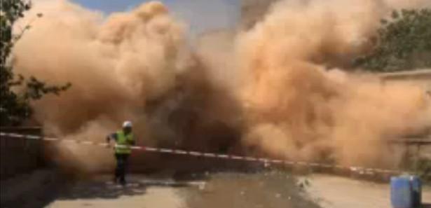 Dev bina kepçenin üzerine böyle yıkıldı!