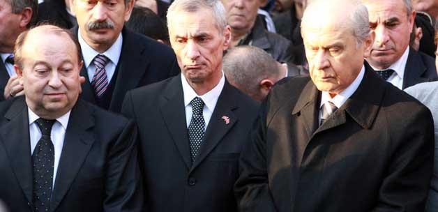 İstanbul'da ilk önce partisinin Eyüp İlçe Başkanlığı'na gelen MHP Genel Başkanı Devlet Bahçeli de, burada bir süre kaldı. Camiye yaya olarak geçen Bahçeli, gazetecilerin, yolsuzluk ve rüşvet operasyonuyla ilgili soruları cevapsız bıraktı. Bahçeli'yi, Eyüp Sultan Camii'nin bahçesinde Engin Alan karşıladı. Burada tokalaşan ikili, daha sonra cenaze namazının kılınacağı alana geçti. Bahçeli'nin girişinde yer darlığından dolayı kargaşa yaşandı. Cenazenin yanına geldiklerinde Bahçeli ve Alan, bir süre sohbet etti. Cenaze namazına emekli askerler ve çok sayıda partili de katıldı.
