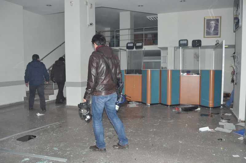 Kadıköy'de sokaklara dökülen eylemciler devlet bankalarına saldırdı. Sokaklardaki niyetlerini gösteren eylemciler Ziraat Bankası'nı yağmaladı.