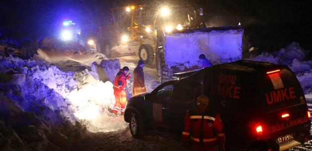 İlçeden yaklaşık 40 kilometre uzaklıktaki mahalleye gitmek üzere dün yola çıkan ekipler, kar yağışı sonrası yolun kapanması nedeniyle hastaya ulaşamayarak yolda mahsur kaldı.