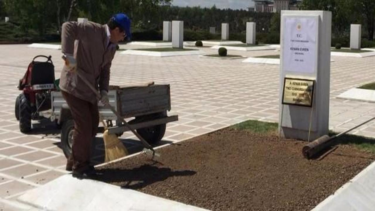 Dün Devlet Mezarlığı'na defnedilen 7'ncı Cumhurbaşkanı Kenan Evren'in mezarında düzenleme çalışmaları devam ediyor.