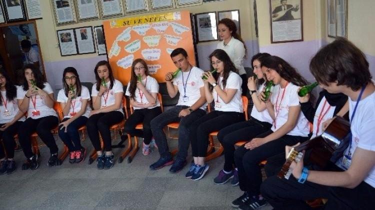 Niğde’de lise öğrencileri, "Su ve Nefes” projesi kapsamında soda şişeleri ile müzik yaptı.