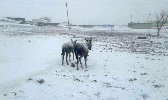 Edinilen bilgiye göre, Şanlıurfa'nın Siverek ilçesinde dün başlayan kar yağışı ve aşırı soğuk nedeniyle dışarıda kalan eşekler dondu. Siverek - Diyarbakır yolunun 20'nci kilometresinde bulunan Güvercin Kırsal Mahallesi'nde çekilen görüntülerde kar yağışı nedeniyle eşeklerin evlerin saçaklarının altına sığınmaya çalıştığı ve üstlerinin karla kaplı olduğu gözlendi. Soğuk havada yaşam mücadelesi veren eşeklerin vücutlarının tümünün buz tuttuğu ve vatandaşlar tarafından ahırlara alınarak kurtarıldıkları öğrenildi.