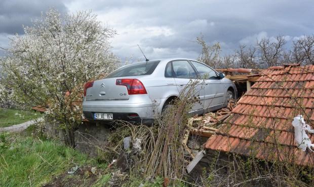 Kazanın, otomobilin el freninin çekilmeden bırakılması sonucu meydana geldiği değerlendirilirken, evde kimsenin bulunmaması olası faciayı önledi.