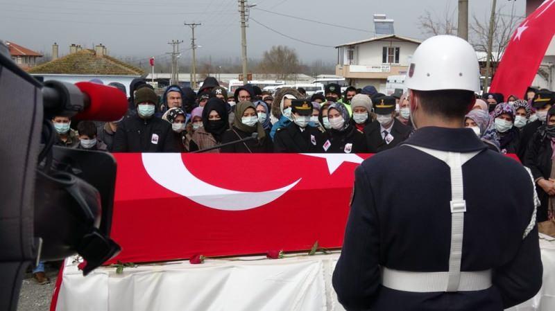 Şehidin cenazesi, Bahçelievler Mahallesi'ndeki babaevinin önünde helallik alınmasının ardından Altıeylül ilçesine bağlı kırsal Çandır Mahallesi'ne taşındı.