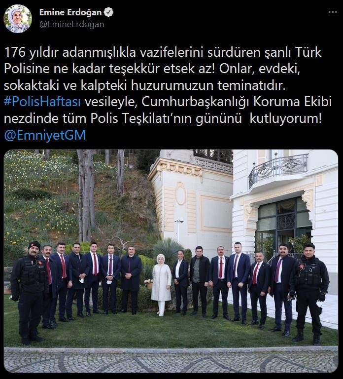 Emine Erdoğan, Polis Haftası dolayısıyla Twitter hesabından paylaşımda bulundu.