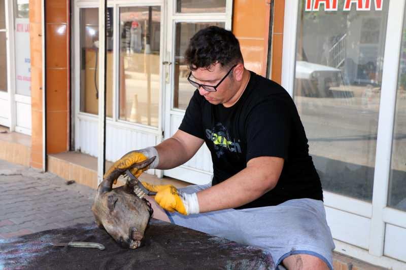 Özel bir eğitim kurumunda Din Kültürü ve Ahlak Bilgisi öğretmenliği yapan baba mesleği demirci olan İlhan Tanrıverdi de bayramda kelle ve paça temizleyerek bütçesine katkı sağladı.