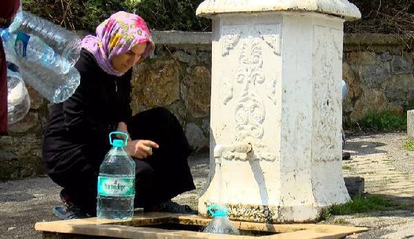 Sarıyer Maden Mahallesi'ndeki çeşmeye gün boyu çok sayıda kişi geliyor. Gelenler, yanlarında getirdikleri damacanaları, pet şişeleri, çeşmeden doldurup, yollarına devam ediyor.