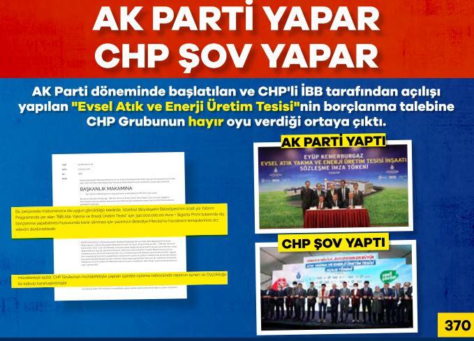 İBB AK Parti Grup Başkanvekili M. Tevfik Göksu, CHP'li İBB'nin üç yılda ortaya koyduğu yönetim anlayışını da "AK Parti dönemine ilişkin tutumu", "İstanbul'a ilişkin tutumu" ve "Vaatlerine ilişkin tutumu" başlıkları altında değerlendirdi. AK Parti dönemine ilişkin tutumunda İBB yönetiminin "iftira" ve "intihal"i seçtiğini söyleyen Göksu; "AK Parti döneminde yapılanları sürekli kötüleme ve geçmişe sürekli iftara atmayı seçtiler. AK Parti döneminde yapılan projeleri tabela asarak veya değiştirerek kendileri yapmış gibi lanse edip siyasi intihal yaptılar" dedi ve bunlara Yenikapı'daki makam aracı şovunu, 'İmara değil, halka açıyoruz" sloganıyla daha önce açılan Kemerburgaz Kent Ormanı'nın ikinci kez açılışını, AK Parti döneminde başlatılan veya tamamlanan Kurbağılıdere'nin ıslahını, Üsküdar yağmursuyu yatırımlarını, 25 yıldır hizmet veren Merter Kapalı Otoparkı'nın ve 1996'da yapılan Cemal Kamacı Spor Kompleksi'nin yeni açılmış gibi gösterilmesini örnek olarak gösterdi.
