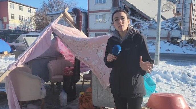 Elbistan'a gönderilen Dilek Gül isimli Euronews muhabiri, gerçekleştirdiği yayında, "Her yere çadırlar ulaşamadığı için buradaki halk çöp konteynırlarını birleştirerek üzerine de çarşaflar gererek bir şekilde kendilerini soğuktan korumaya çalışıyor." ifadelerini kullandı.