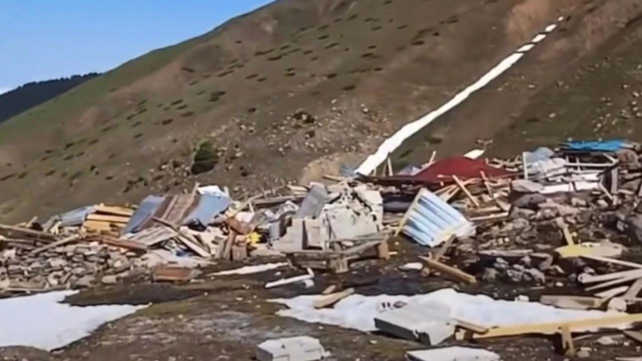 Artvin'de kar eriyince yayladaki evlerin yıkıldığı ortaya çıktı