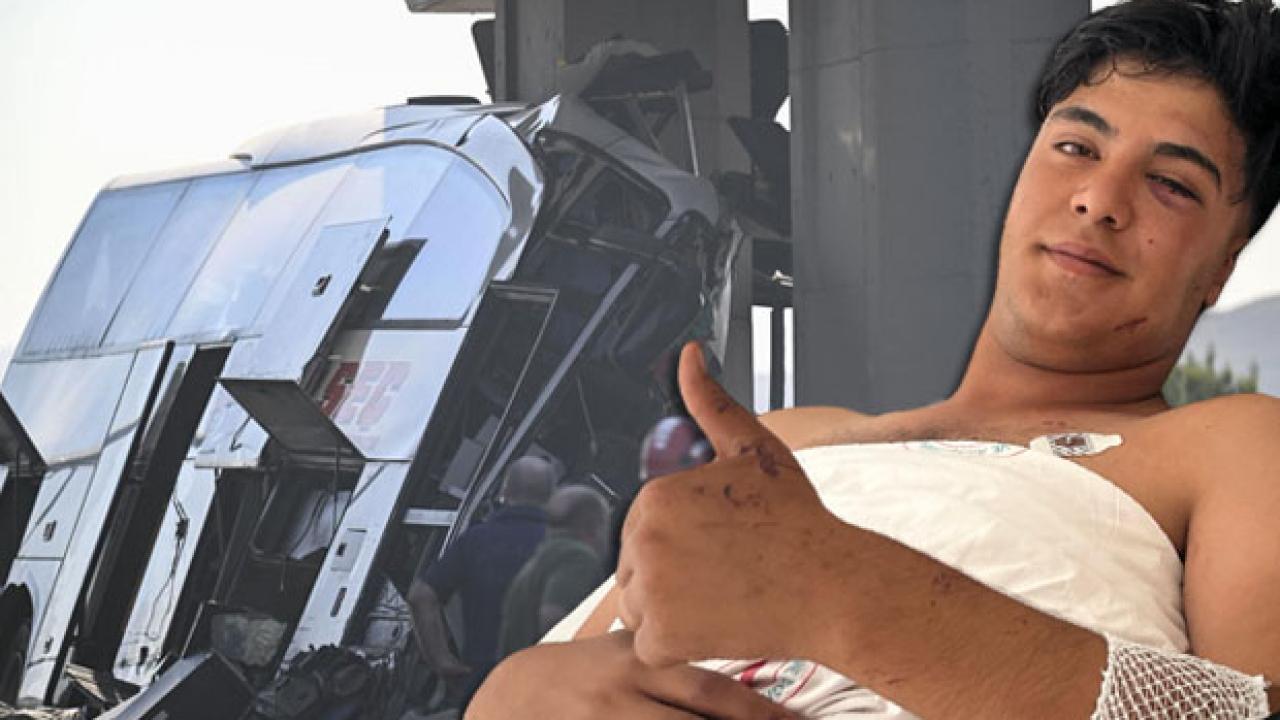 Otobüste 21 ve 22 numaralı koltuklarda oturan iki kardeşin tedavisi hastanede sürüyor. Bacaklarında kırık meydana gelen Batuhan Polat, DHA'ya konuştu.