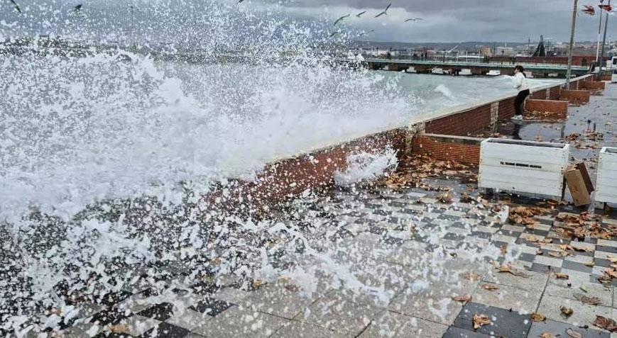 Tekirdağ sahilinde dalgaların boyu zaman zaman 3 metreyi bulurken, kıyı bölgelerinde dev dalgaların kara ile buluşması dikkat çekti.