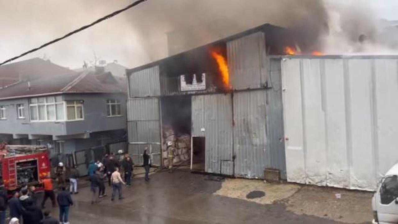Sultanbeyli'de palet üretim atölyesinde yangın